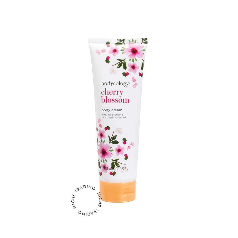 Moisturize skin with Bodycology Cherry Blossom Body Cream. Formulated with a rich butter complex containing Shea Cocoa and Jojoba butter this luxurious cream leaves skin feeling soft for hours. For Daily Use: Smooth over skin giving special care to dry or rough areas to enjoy long-lasting hydration. Enjoy the blissful and radiant scent of blushing cherry blossoms with the Bodycology Cherry Blossom scent.