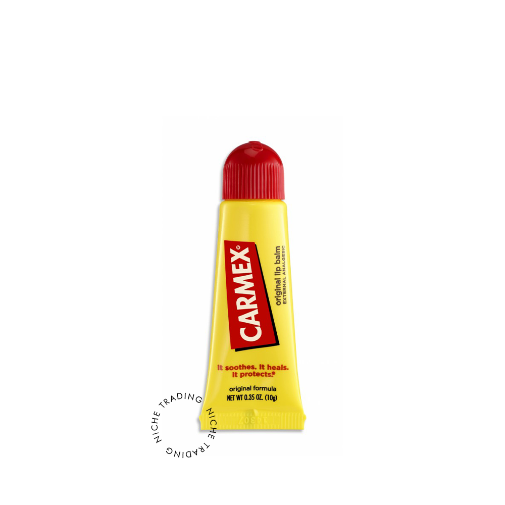 A staple in lip care, the Carmex Original Lip Balm Tube (10g) delivers intensive moisture and protection with a signature blend of menthol, camphor, and petrolatum. Known for its soothing tingle and effective healing properties, this balm is designed to treat severely dry or chapped lips. The squeeze tube offers clean, precise application, making it a favorite for everyday use.