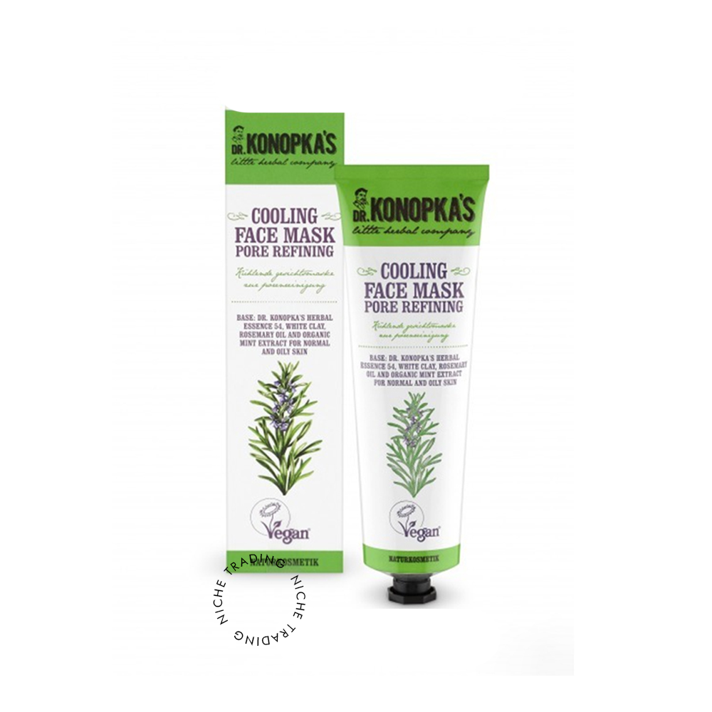 Cooling face mask consists of Dr. Konopka���s special herbal essence ��� 54 and white clay that help cleanse clogged pores, nourish and hydrate the skin. Combined with rosemary oil and mint organic extract it gives pleasant cooling effect, boosting skin���s tonicity a