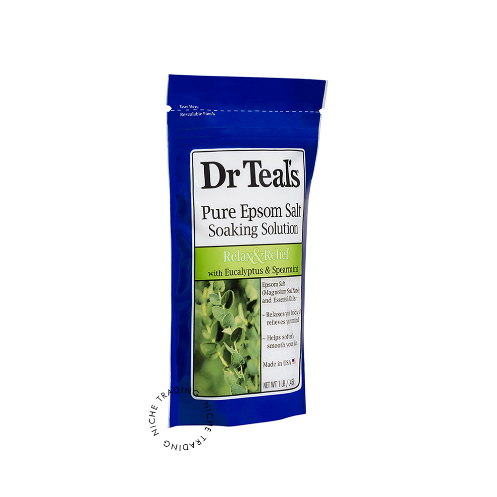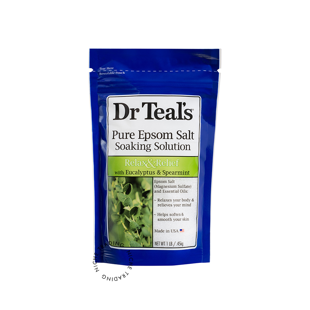 Dr Teals Soaking Solution combines Pure Epsom Salt which has long been known to revitalize tired, achy muscles with luxurious essential oils to soothe the senses and help provide relief from stress. Spearmint is used as a restorative for the body, while Eucalyptus stimulates the senses.